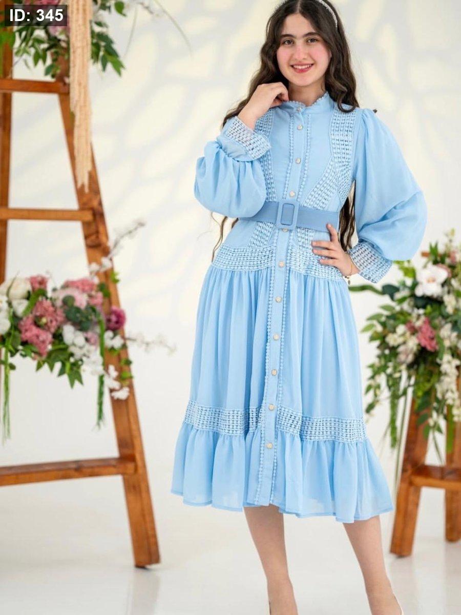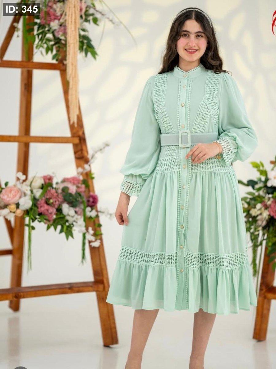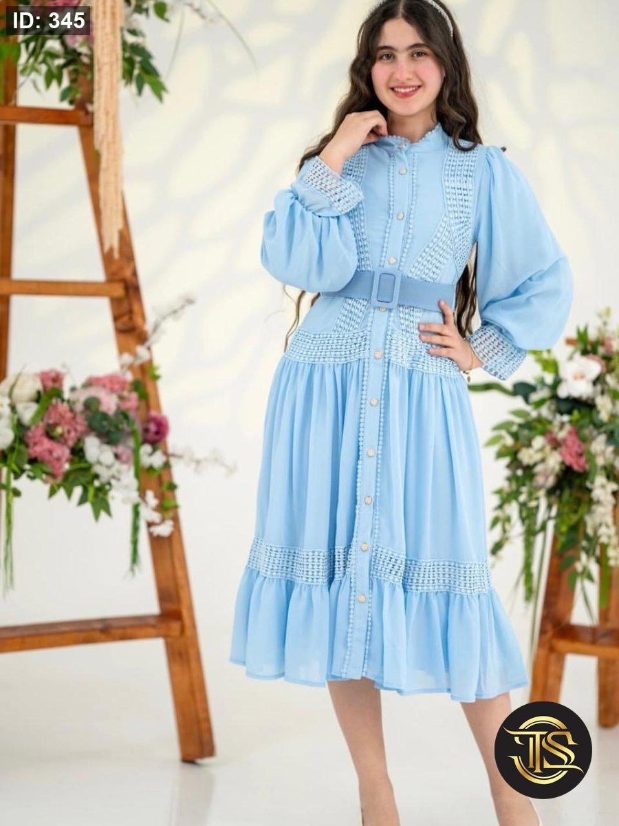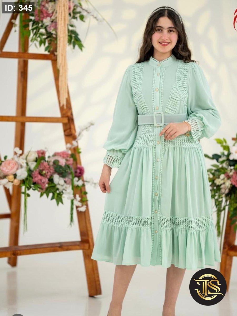 تصميم أنيق بطبقات كشكش مرتبة ولمسات دانتيل فاخرة على الصدر والمنتصف تعطيه طابع كلاسيكي مميز 💛
